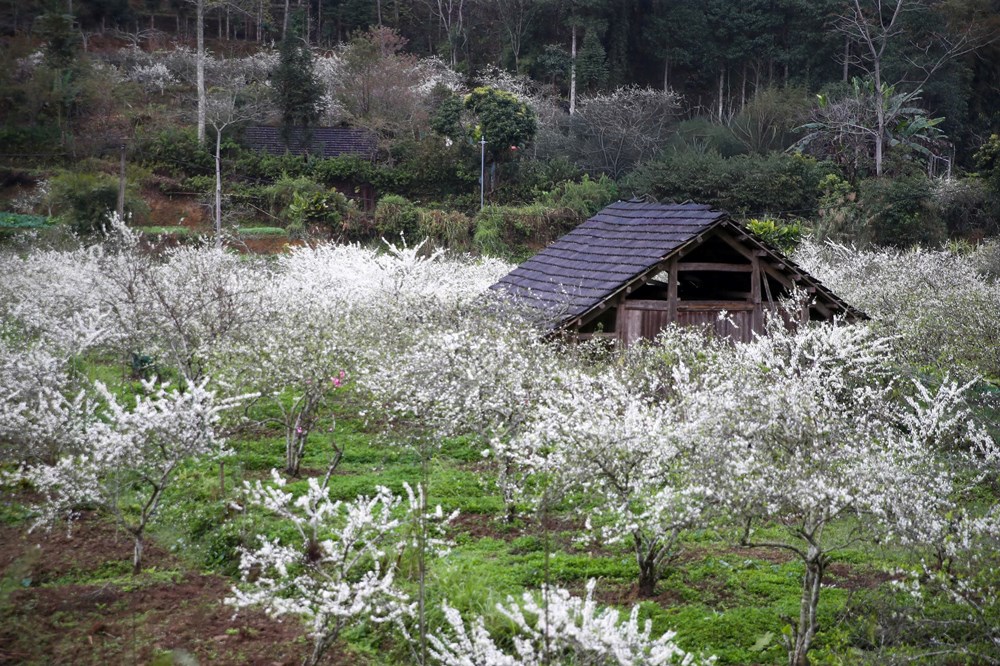 Cả bản làng như bị bao phủ bởi vẻ đẹp tinh khôi của loài mận Tam Hoa đầy giản dị mà chẳng kém phần kiêu sa này. Sắc hoa tinh khôi, nở rộ trong những khu vườn, bên cạnh đầu nhà, cánh hoa mỏng manh, rơi vãi trên những con đường đất đỏ, để rồi nơi đây hiện lên tựa bức tranh thiên nhiên đầy thi vị, quyến rũ.